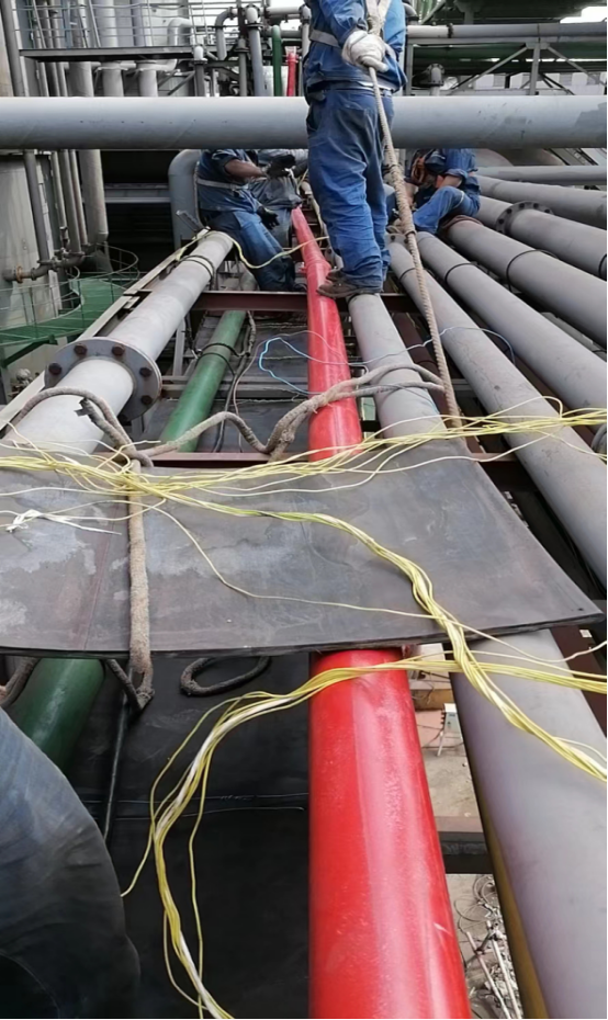 為了確保固定膠皮的線不生銹、不腐蝕,檢修班創(chuàng)新采用了耐腐蝕的塑包線。從6月開(kāi)始,在檢修班的齊心協(xié)力下,截止12月20日完成了長(zhǎng)達(dá)1000多米的膠皮鋪設(shè)工作。