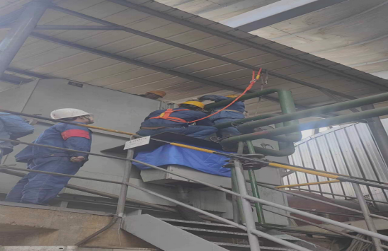 2023年4月14日系統(tǒng)停機,生產(chǎn)班監(jiān)護檢修班組檢查風(fēng)機,相關(guān)的防護措施做到位。