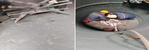 威遠(yuǎn)藍(lán)鼎檢修班組現(xiàn)場(chǎng)測(cè)量刮刀尺寸,在現(xiàn)有磨損設(shè)備基礎(chǔ)上進(jìn)行維護(hù)保養(yǎng),對(duì)閃蒸所有固定框架進(jìn)行加固處理,生產(chǎn)、檢修班組在運(yùn)行上加強(qiáng)閃蒸主機(jī)運(yùn)行點(diǎn)檢和潤(rùn)滑工作,確保備件到廠前穩(wěn)定運(yùn)行,降低潛在風(fēng)險(xiǎn),在公司采購(gòu)大力支持下,3月底老區(qū)閃蒸刮刀順利到廠。